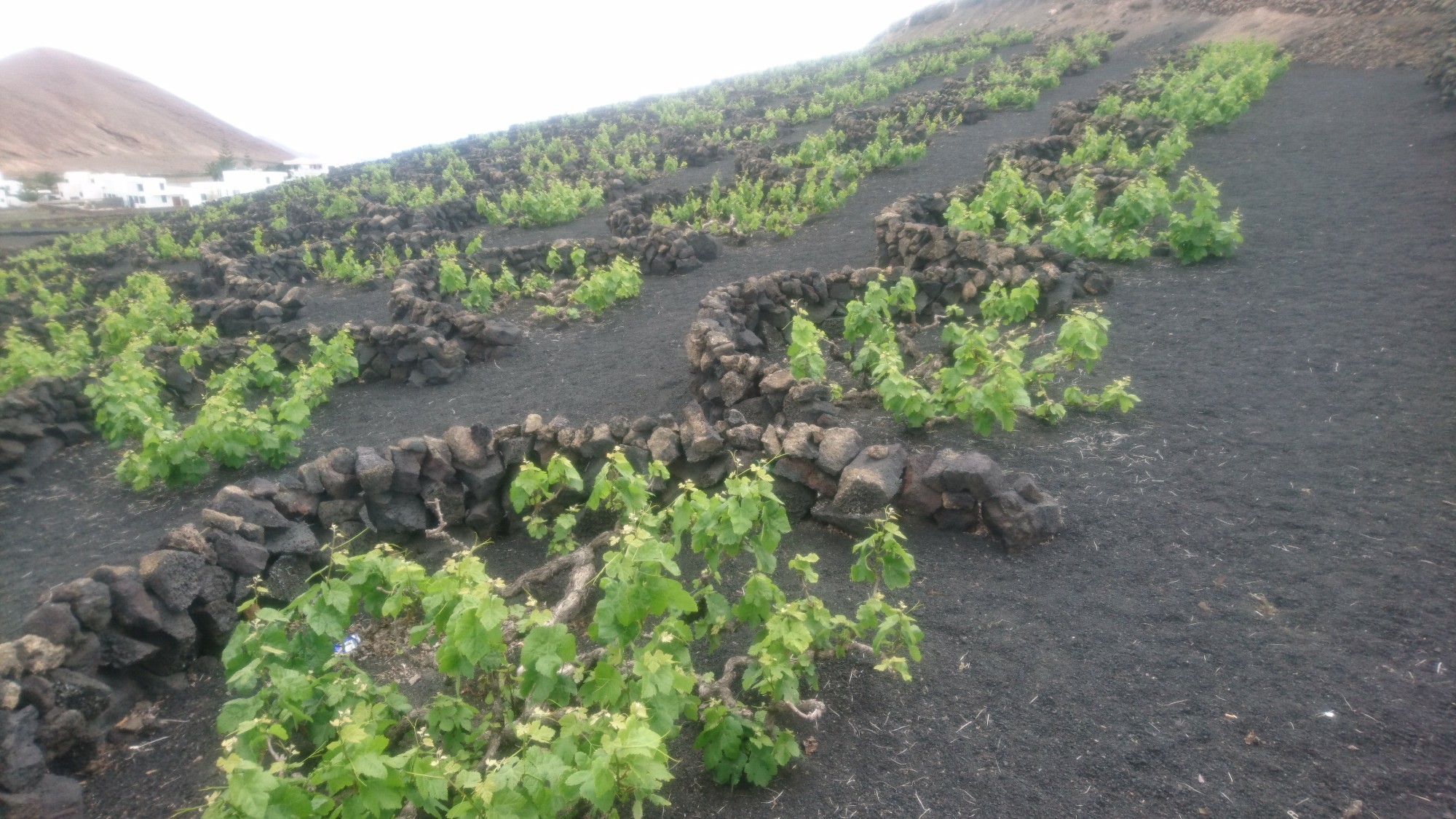 Dabei passierten wir eine Weinbau-Gegend. Weinbau sieht hier aber ganz anders aus. Die Reben sind nicht so in Reih und Glied wie bei und, sondern jede einzelne in einem eigenen Graben mit Mauer drum herum. Grund ist der Wasserleben und der Wind. Durch den Graben läuft das wenige Regen-Wasser in der Mitte zusammen und schützt zusammen mit der Mauer vor dem vielen Wind und hält die Wärme bei der Pflanze.